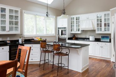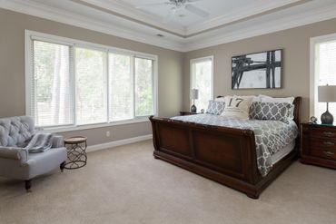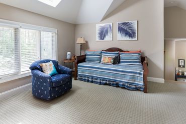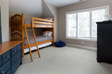 This 3500+ sq ft home has 4 bedrooms and 4.5 bathrooms and sleeps 11. There are two king rooms in one wing and a queen and bunk room (containing bunk bed with trundle), with attached kids' den (including daybed with trundle), in the other wing.